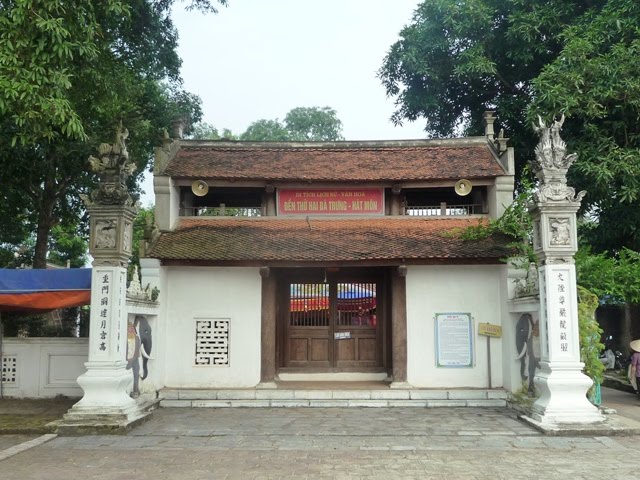 Ở địa phận xã Hát Môn huyện Phúc Lộc. Vương người huyện Mê Linh thuộc Châu Phong. Nguyên họ Lạc, con gái của Lạc tướng Giao Châu, chị húy Trắc, em húy Nhị. Người chị lấy chồng người huyện Chu Diên. Bấy giờ Thử sử Tô Định tham tàn bạo ngược, hai chị em dấy binh đánh lại, chiếm Giao Châu, bình định 65 thành ở Lĩnh Nam, tự lập làm vua nước Việt, xưng họ là Trưng. Hán Quang Vũ sai bọn Mã Viện, Lưu Phong đánh lại. Quân kéo đến Lãng Bạc, hai bà chống đỡ không nổi, lui về giữ Cấm Khê, sau không biết dấu tích. Về sau người châu ấy lập đền thờ cúng. Triều Lý Anh Tông cầu mưa được ứng nghiệm. Vua mộng thấy hai bà nói rằng: “Bọn thiếp là hai chị em họ Trưng, vâng mệnh thượng đế làm mưa”. Vua tỉnh giấc, ban sắc tu tạo từ vũ, phong làm Trinh Linh nhị phu nhân. Trải các triều nhiều lần được phong tặng. (Trích Sử ký [tức Đại Việt sử ký toàn thư], Lĩnh Nam chích quái).