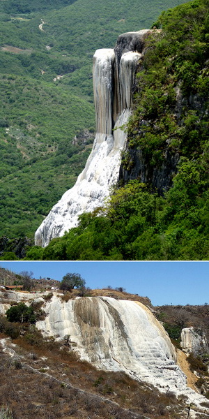 Hierve el Agua ở Oaxaca, Mexico trông như một thác nước tuyệt đẹp vậy nhưng thực tế chúng là những tảng đá khổng lồ tạo thành. Màu trắng của đá vôi khiến chúng ta liên tưởng đến những ngọn thác.